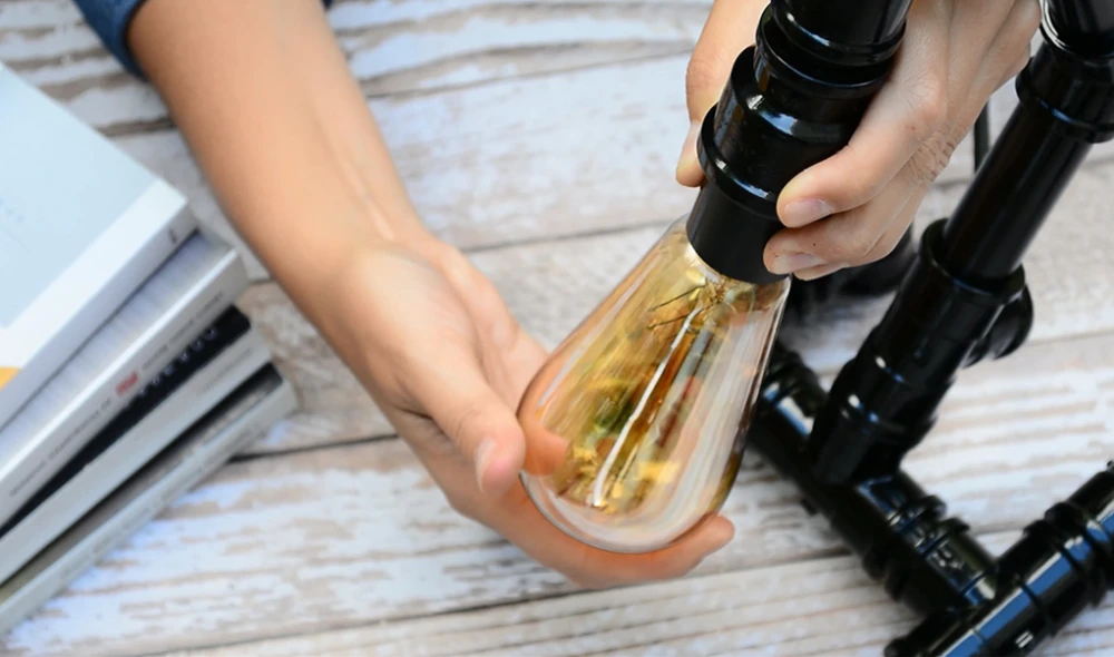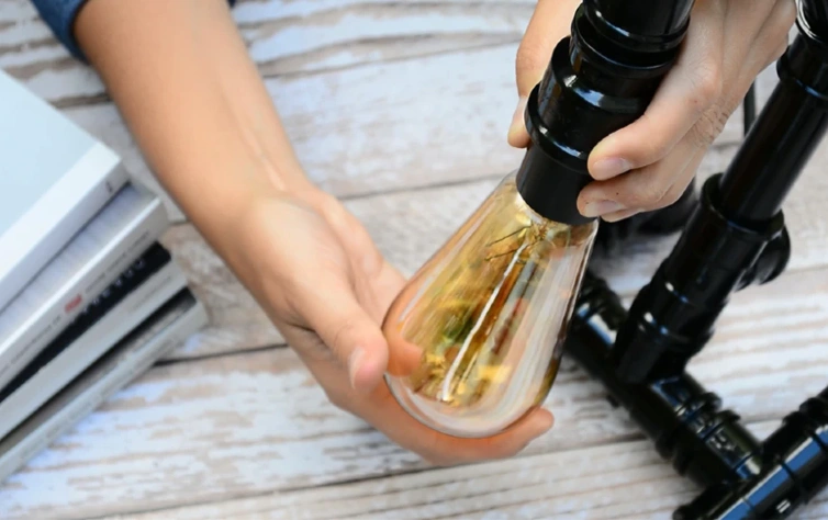 Passo 9: Instale o plugue e coloque a lâmpada. Sua luminária está pronta!