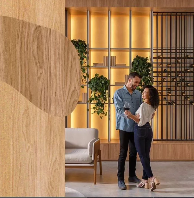 Elegante, sofisticado e atemporal, este novo padrão está conquistando os corações de quem busca intensificar as sensações de relaxamento e acolhimento nos ambientes da casa. Com tonalidade castanho médio amarelado, nasceu da inspiração na mansidão das árvores, na beleza dos bosques, na sabedoria das florestas.